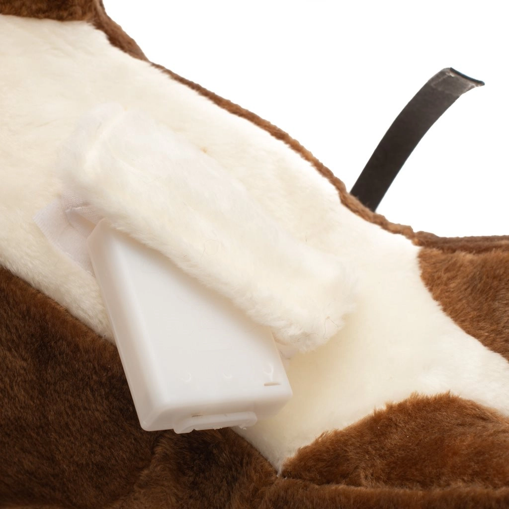Dankzij de stabiele constructie en de mogelijkheid om de hobbellatten te demonteren is het paardje praktisch voor thuisgebruik en opbergen. De batterijmodule is slim verborgen in een zakje op de buik. Het speelgoed ondersteunt de ontwikkeling van motoriek, evenwicht en fantasie.