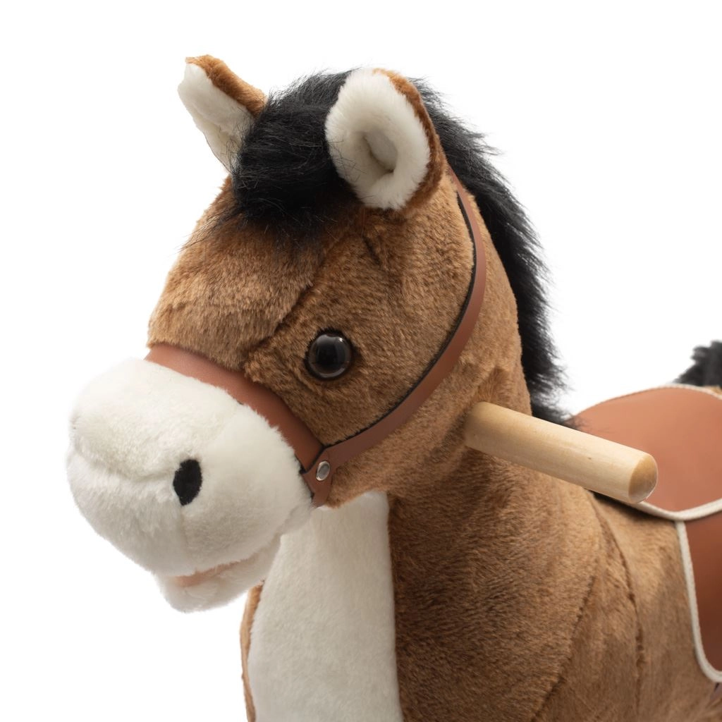Ontdek de magie van hobbelplezier met het PlayTo hobbelpaard in bruine kleur. Dit schattige pluchen paardje heeft een zachte, comfortabele bekleding, stabiele houten latten en interactieve oortjes die na indrukken het Tsjechische of Slowaakse liedje „Prší, prší” afspelen. Dankzij de stevige constructie en de gevormde zitting is het rijden veilig en prettig, terwijl het speelgoed de coördinatie ontwikkelt en de verbeelding van kinderen stimuleert.