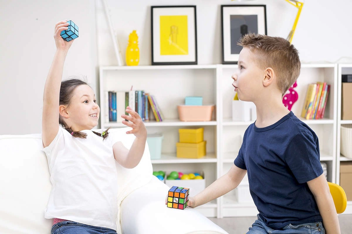 - Twee kubussen in één verpakking – 2x2 voor de start, 3x3 voor de klassieke uitdaging.