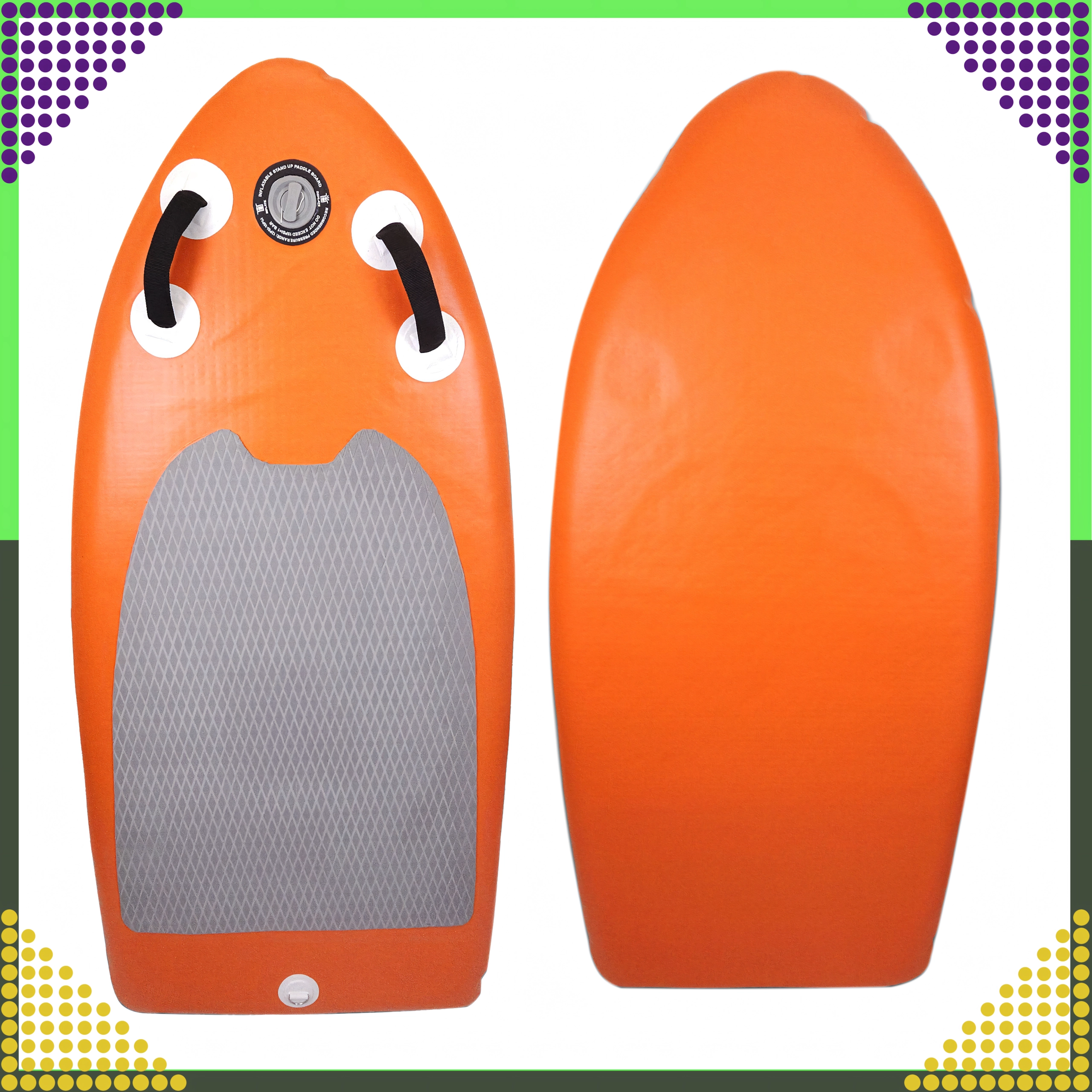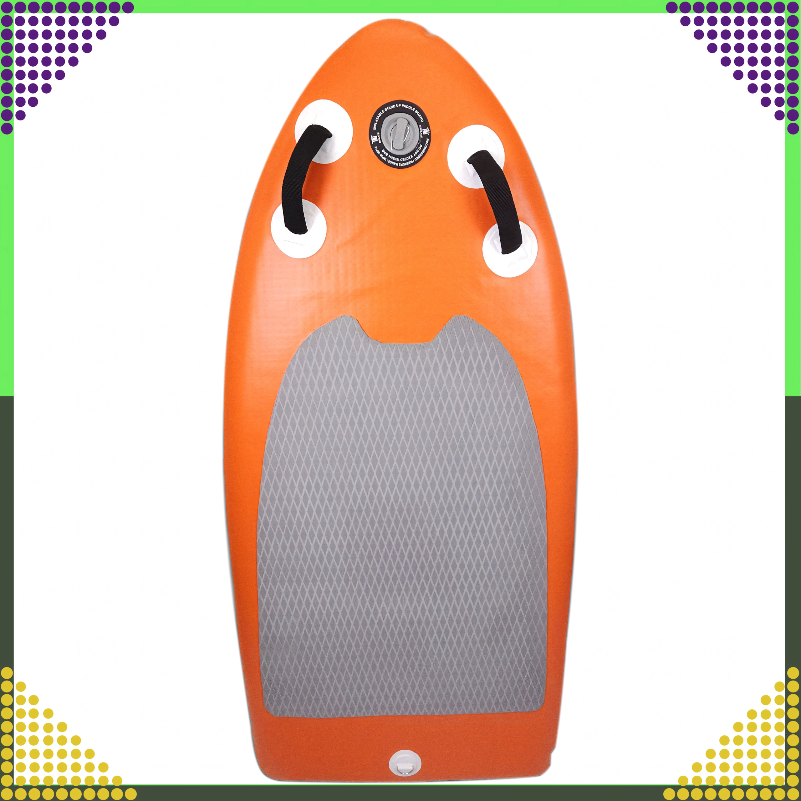 De constructie met composietbekleding en een versterkte PVC-laag biedt hoge duurzaamheid, terwijl het oppervlak van EVA-schuim met diamantstructuur je voet stevig op zijn plaats houdt, ook tijdens langere tochten. Het hogedrukventiel zorgt voor snelle en veilige inflatie, terwijl thermische verlijming van de lagen uitstekende dichtheid en een lange levensduur biedt.