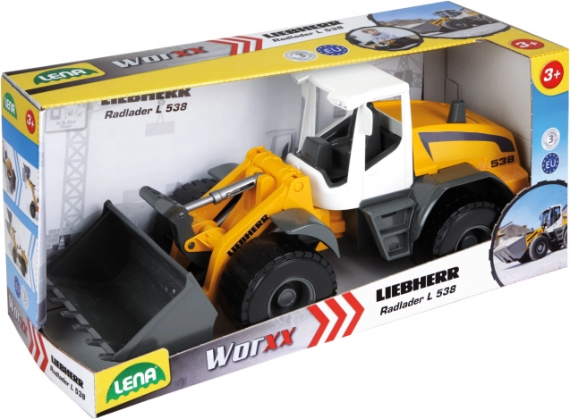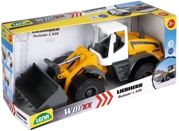 De gelicentieerde LIEBHERR kinderwiellader van LENA brengt realistisch bouwplezier, zowel binnen als buiten. Dankzij de beweegbare laadbak en arm schept hij moeiteloos zand of steentjes en de onafhankelijk bewegende voorwielen maken het rijden leuk en soepel. De robuuste constructie van hoogwaardig kunststof en metalen wielassen met een diameter van 6 mm garanderen een lange levensduur, zelfs bij intensief spelen.