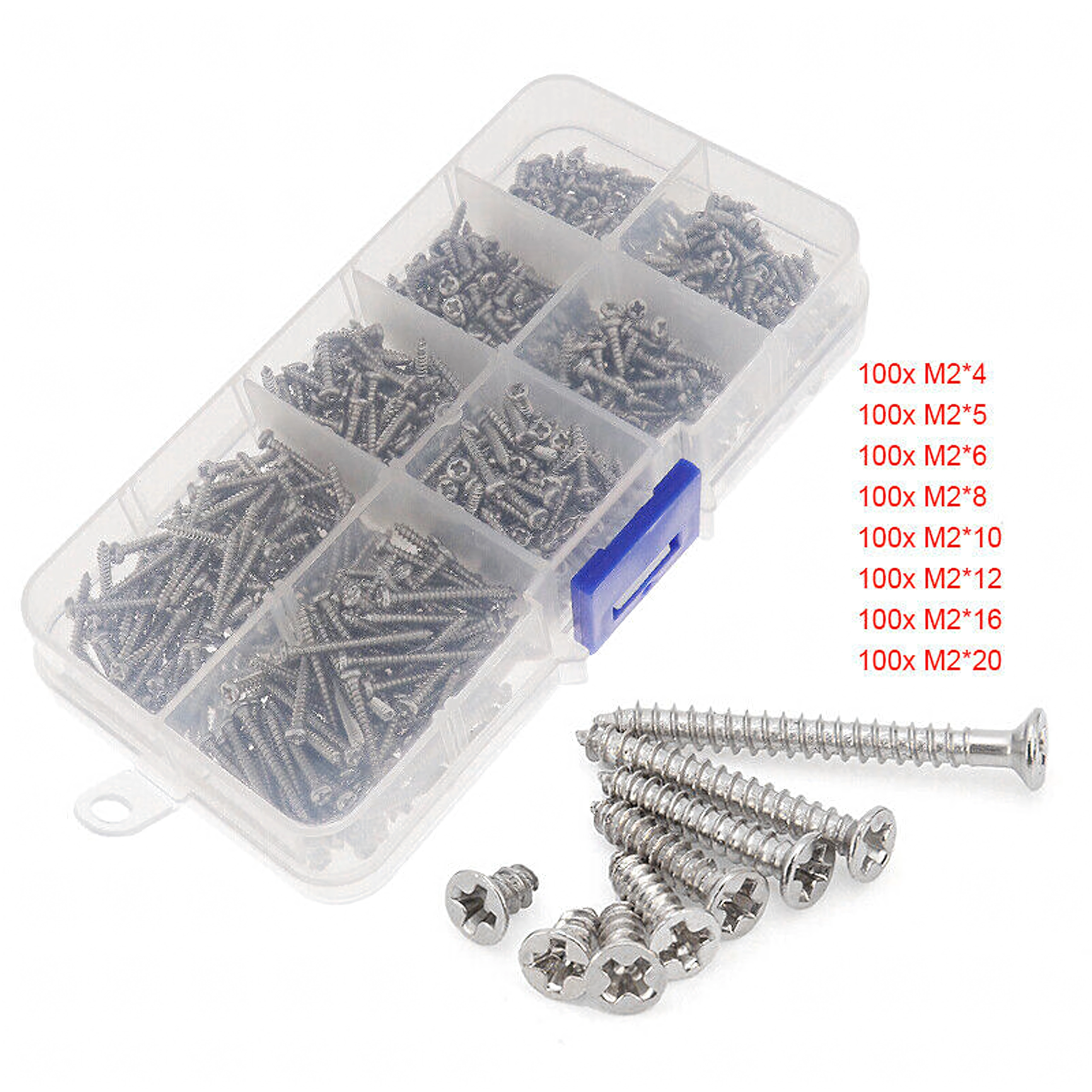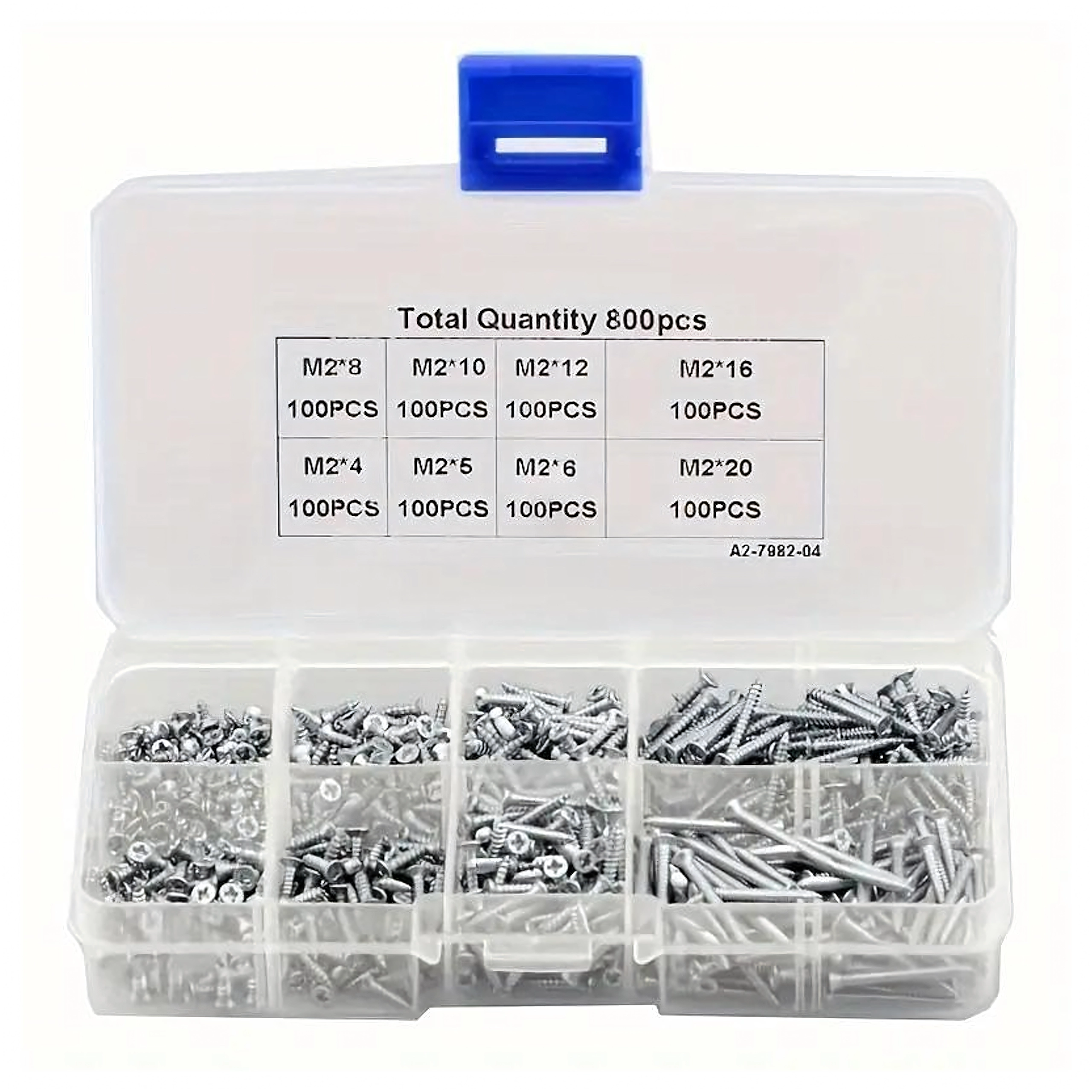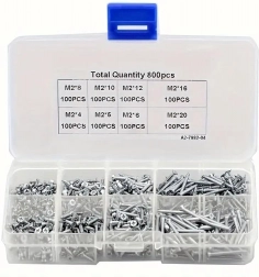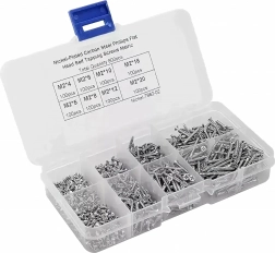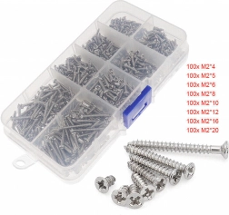 Deze complete set M2-schroeven is een uitstekende keuze voor de thuiswerkplaats, elektronicareparaties en meubelmontage. De duurzame vernikkelde afwerking zorgt voor betere corrosiebescherming en soepel schroeven. Dankzij 8 verschillende lengtes kies je eenvoudig de juiste schroef voor het betreffende materiaal en de dikte.