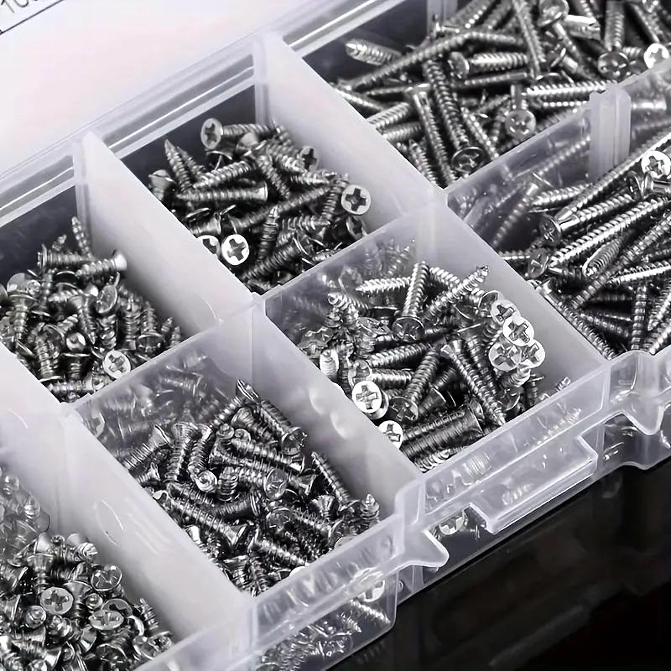 Elke maat heeft een eigen vak en duidelijke markering, zodat je altijd snel de juiste schroef voor de klus vindt.