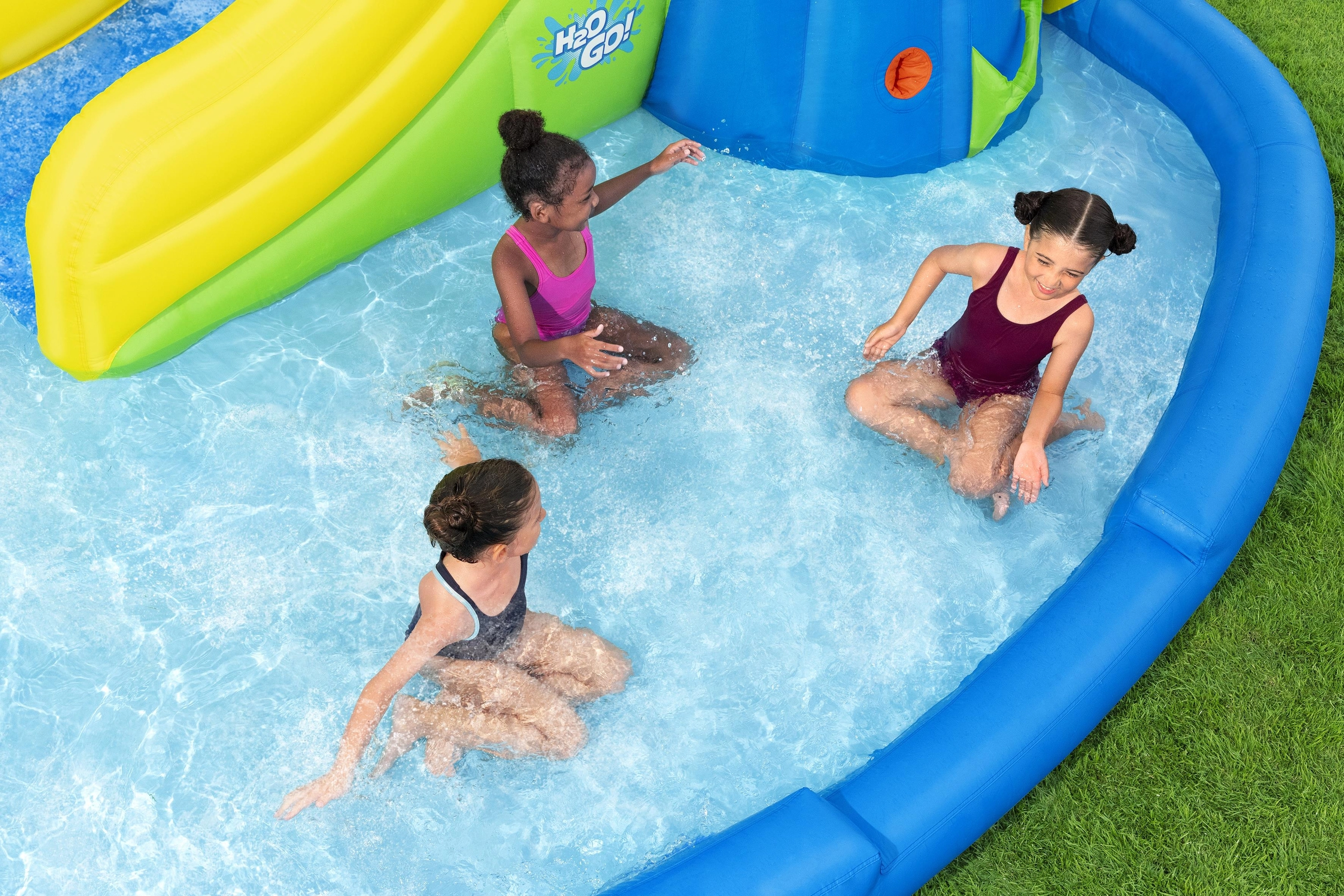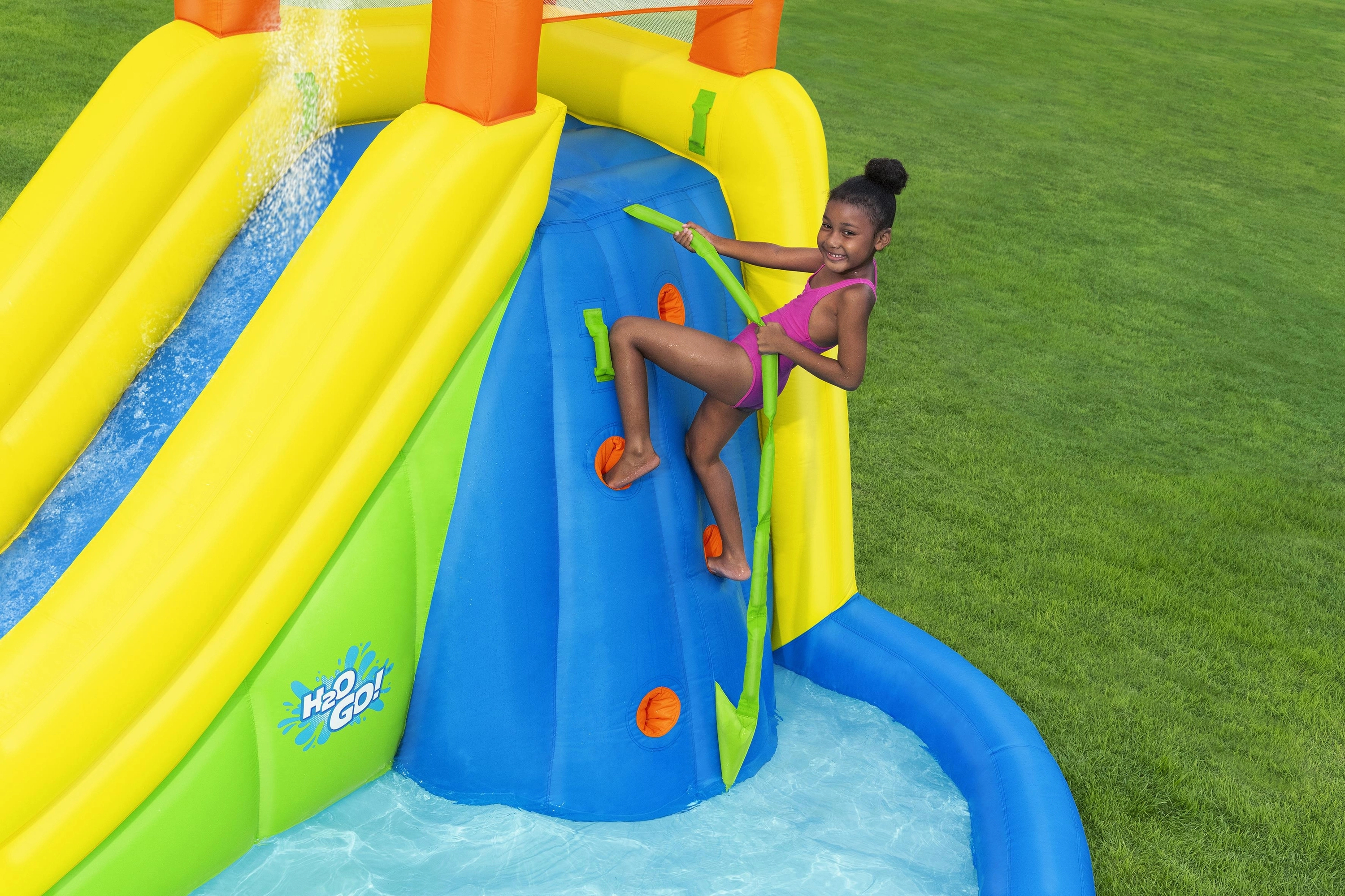 Het opblaasbare waterpark H2O GO! biedt kinderen actieve buitenspeelpret – klimmen, glijden, spetteren en waterduels. Ingebouwde sproeiers houden de glijbanen aangenaam glad en koel, zodat kinderen ook op hete dagen soepel kunnen glijden. Het duurzame materiaal en doordachte veiligheidsfeatures maken deze set een ideale keuze voor een gezinszomer.