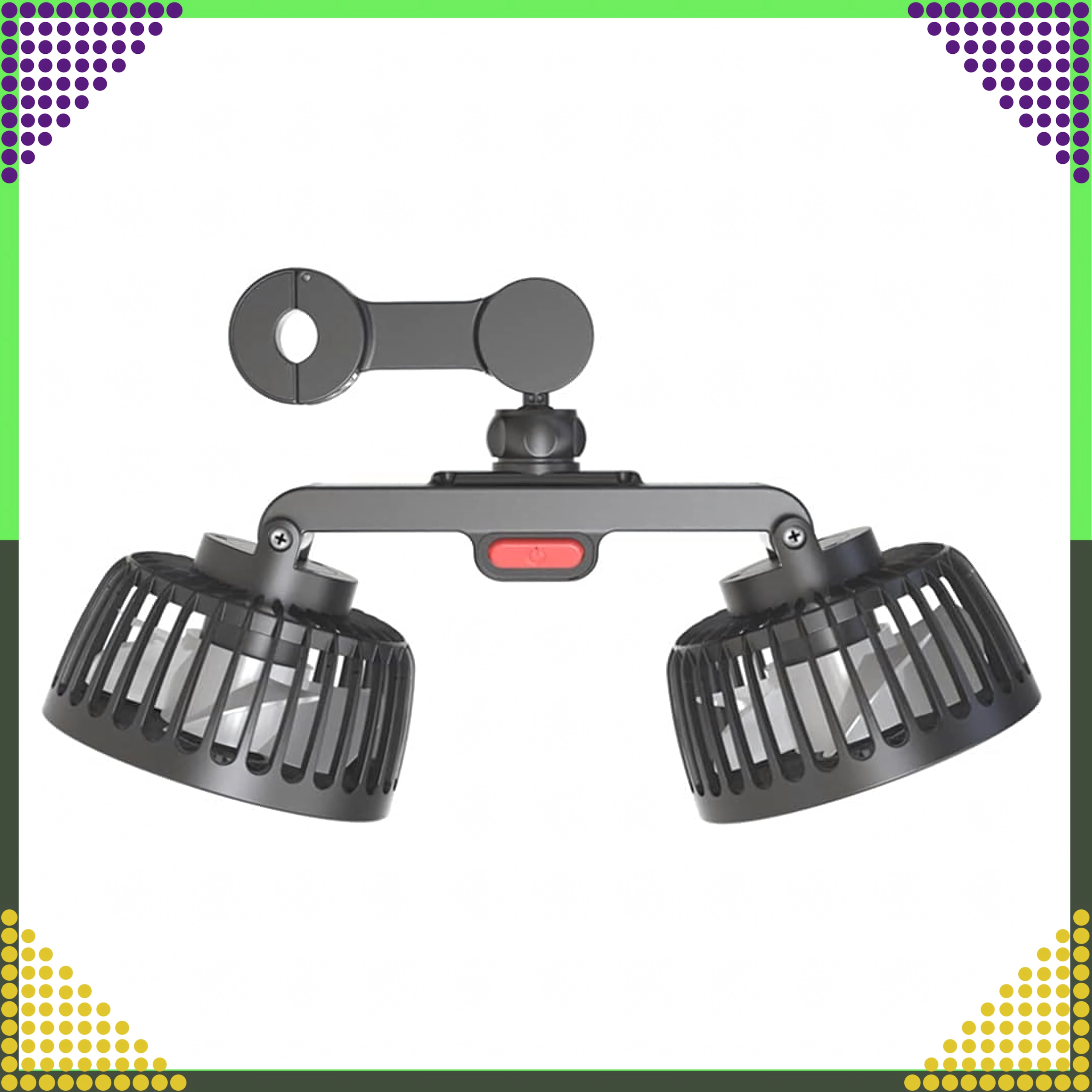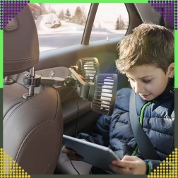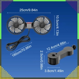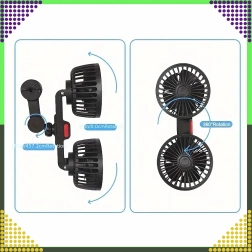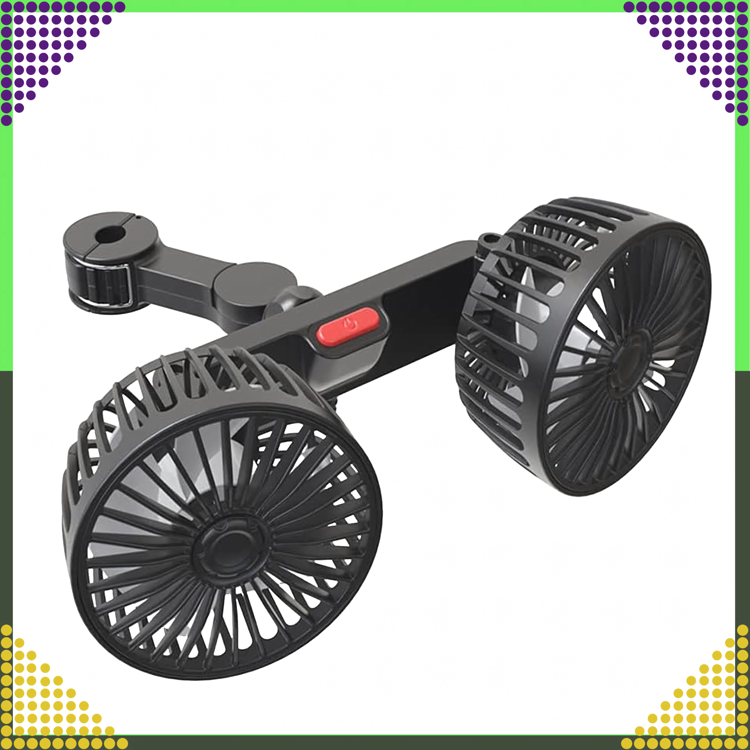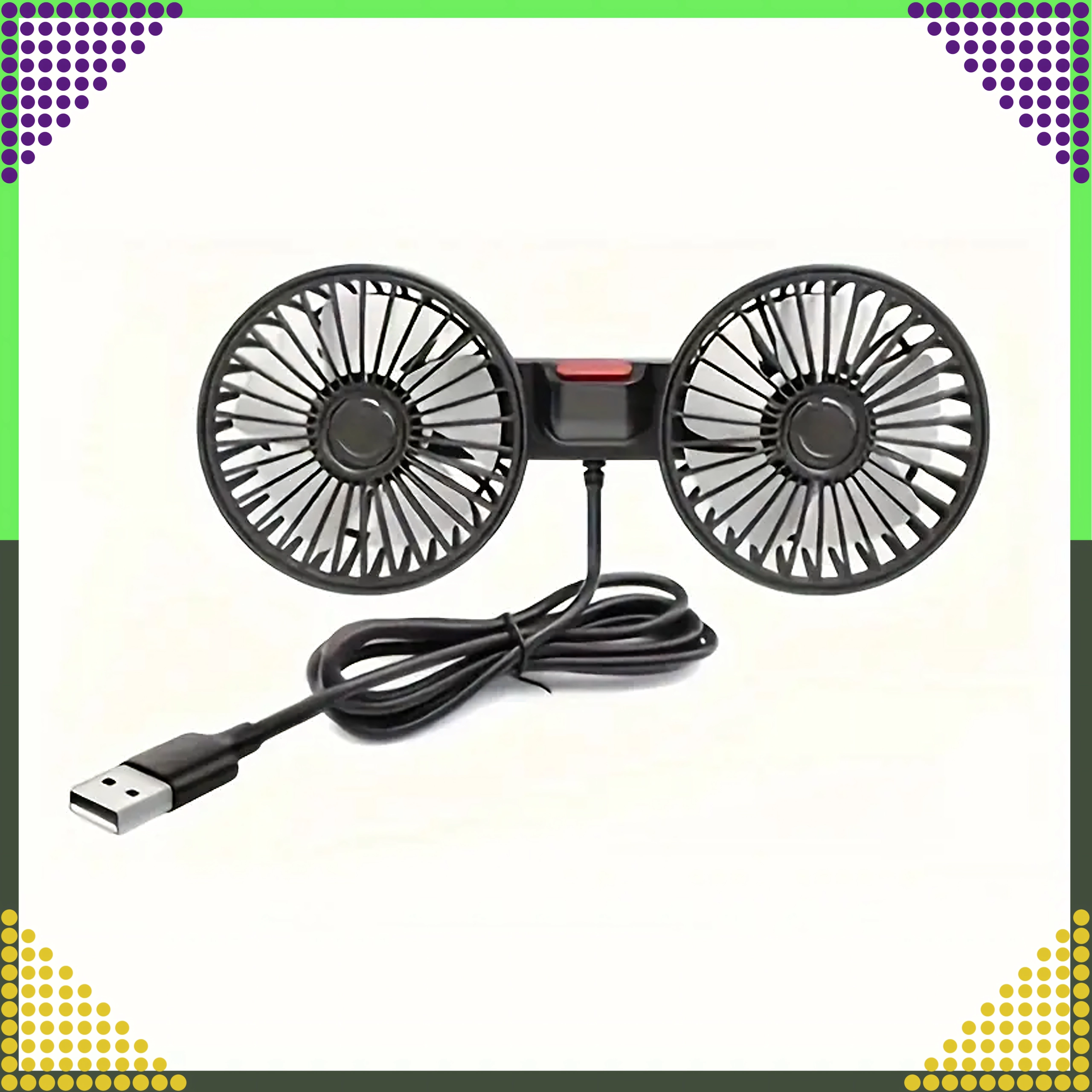 Compacte dubbele ventilator voor de hoofdsteun met krachtige luchtstroom en stille koeling voor de achterbank. Dankzij de 360° draaibare koppen richt je de lucht precies waar nodig. Werkt op 12/24 V in de auto of 5 V via USB, ideaal voor auto, camper, kinderwagen of kamperen.