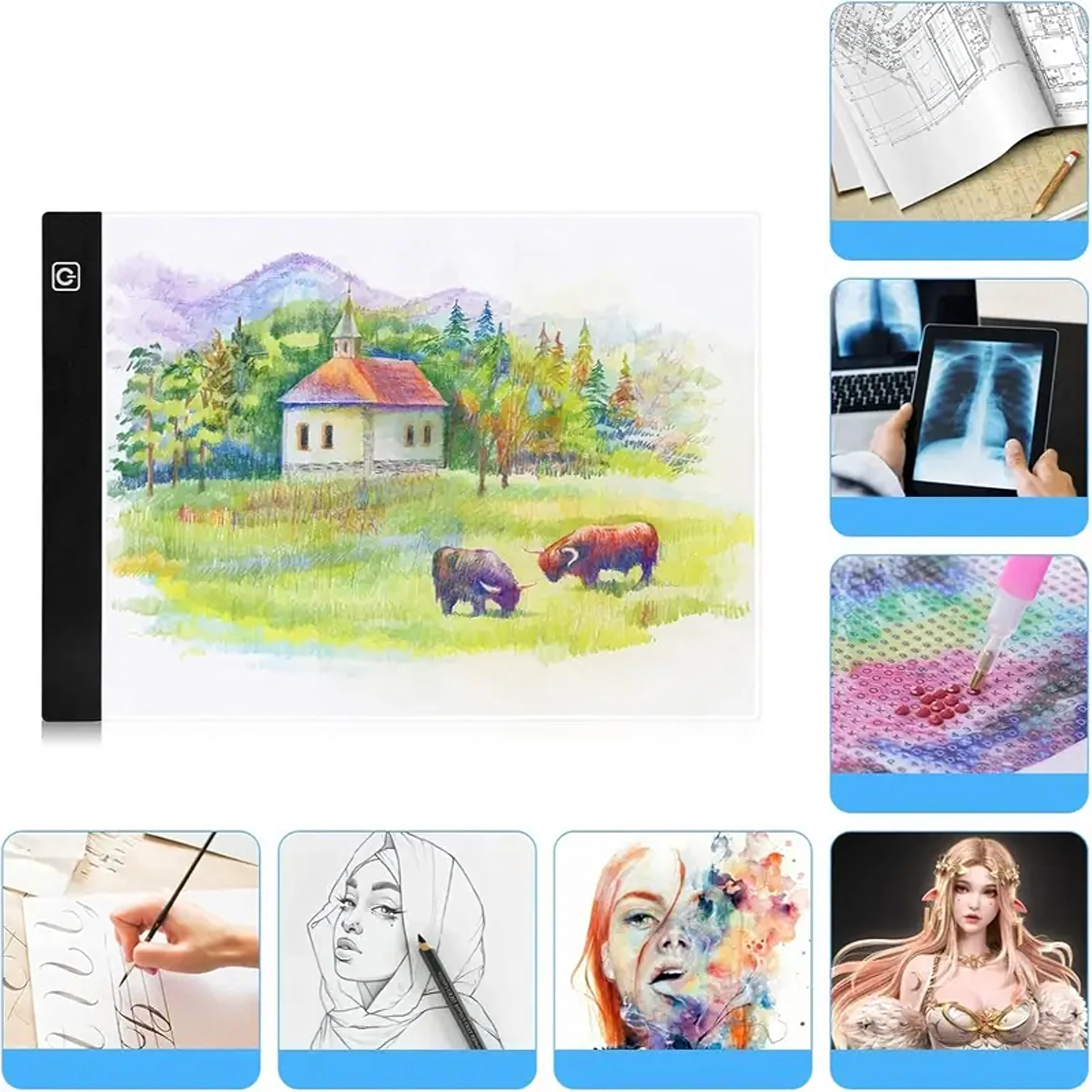 De plaat is ideaal voor tekenaars, architecten, tatoeëerders, animatoren en liefhebbers van diamond painting. Het duurzame acryl oppervlak en de ultraslanke behuizing passen gemakkelijk in een rugzak en maken werken bijna overal mogelijk.
