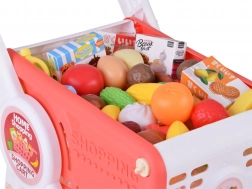 De kinderboodschappenkar in rood-wit is ideaal voor winkeltje spelen, het speelkeukentje en rollenspellen thuis. De robuuste maar lichte constructie met vier wielen rijdt soepel door het huis, terwijl de onderste plank extra ruimte biedt voor “grotere boodschappen”. De set bevat een bonte selectie kunststof etenswaren die realistisch ogen en uitnodigen tot ontdekken.