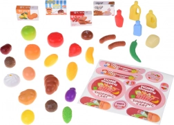 De set bevat fruit, groenten, brood, vleeswaren, drankjes en kleine doosjes. Realistische vormen en kleuren ondersteunen leren en verbeelding.