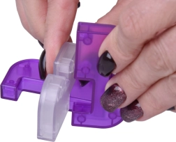 Halftransparante paarse kunststof elementen ogen modern, liggen prettig in de hand en onthullen de verbindingsdetails.