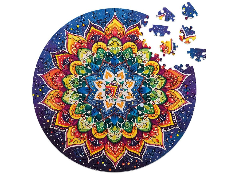 Ontdek de magie van ontspanning met houten puzzels geïnspireerd op het mandalamotief. De set bevat 100 onregelmatige stukjes, waarvan 5 speciale vormen, die samen een harmonisch en hypnotiserend patroon creëren. Gemaakt van hoogwaardig hout voor duurzaamheid en nauwkeurige passing – ideaal voor ontspanning, focus en meditatie.
