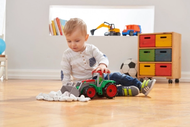 De TRUXX tractor is een robuust speelgoed voor dagelijks avontuur. De bewegende voorlader schept moeiteloos zand, steentjes of blokken, terwijl de kantelbare cabine en de meegeleverde figuur de creatieve spelbeleving en fijne motoriek stimuleren. De stevige maar flexibele kunststof zonder scherpe randen is ideaal voor jonge kinderen.