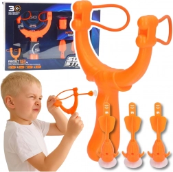 Leuke en veilige set voor kleine schutters: een lichte katapult met elastiek en 3 pijlen met zuignappen die betrouwbaar hechten aan gladde oppervlakken. Een geweldige keuze voor precisietraining, oog-handcoördinatie en actieve spelletjes binnen en buiten. Eenvoudige bediening, duurzame constructie en een bereik tot ca. 12 m zorgen voor veel plezier.