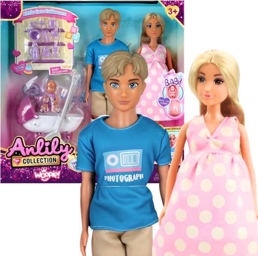 De familieset poppen van het merk Woopie biedt kinderen uren creatief speelplezier. Bevat een zwangere mama met uitneembare baby, een stijlvolle papa, een baby, een kinderwagen en veel verzorgingsaccessoires. Stimuleert empathie, rollenspel en fantasieontwikkeling.
