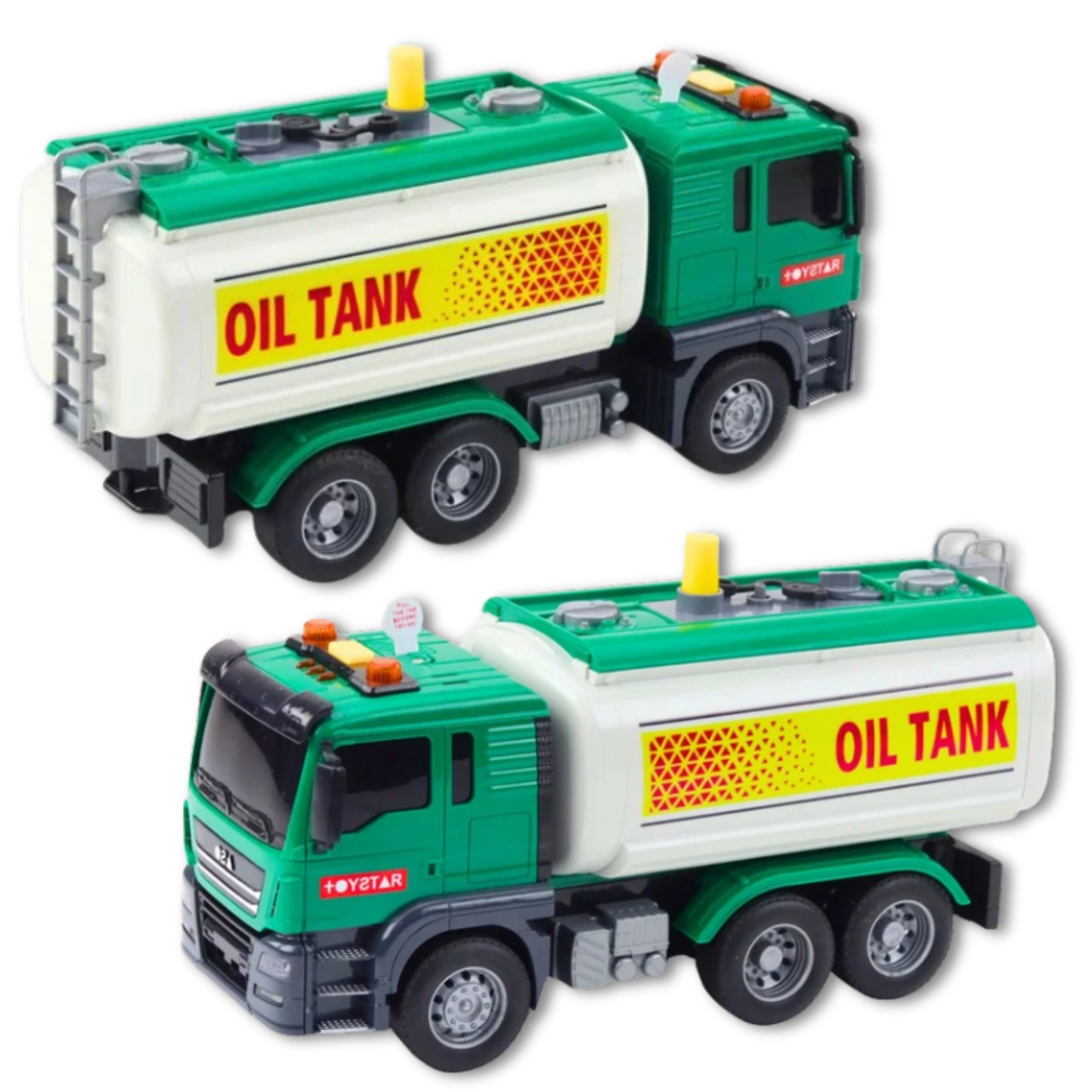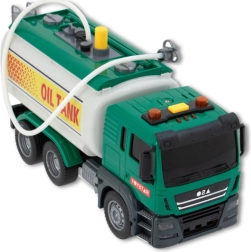 Deze groene technische watertankwagen op schaal 1:14 brengt kinderen realistisch speelplezier. Vul eenvoudig de tank, druk op de gele pompknop en er stroomt water uit de slang – ideaal voor het simuleren van tanken en actierijke speelscenario’s. Op het dak van de cabine vind je effectknoppen – claxon, achteruitrijden en motorgeluiden aangevuld met knipperende lichten.