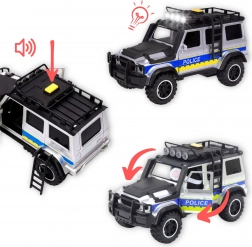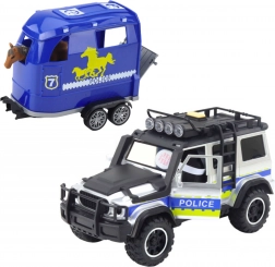 Ontdek de actievolle wereld van de politiedienst met een realistische set die een stevige terreinwagen combineert met een aanhanger voor het vervoeren van een paard. Dankzij de licht- en geluidseffecten voelt het spel levensecht en bedenken kinderen moeiteloos hun eigen verhalen. Openende deuren en een afkoppelbare aanhanger stimuleren de fantasie en de fijne motoriek.