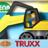Robuuste kinder-graafmachine LENA TRUXX van hoogwaardig kunststof verrukt kleine bouwers vanaf 2 jaar. Hij is volledig mechanisch functioneel, heeft een beweegbare arm met bak, een vergrendeling tegen ongewenst draaien van de bovenbouw en een kantelbare cabine met chauffeurspoppetje. Afmetingen 37 × 21 × 16 cm, ideaal voor thuis en in de zandbak.