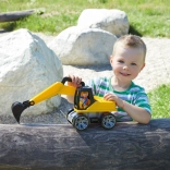 Kinderen bedienen de beweegbare arm en de bak zonder batterijen. De draaibare bovenbouw heeft een vergrendeling tegen ongewenst draaien, voor stabiel en veilig rijden.