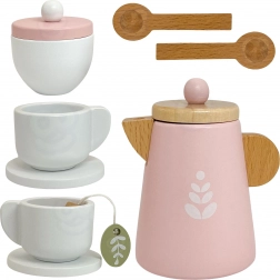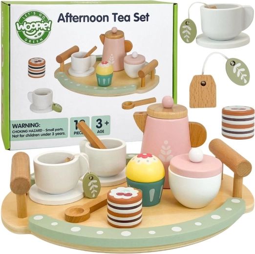 De WOOPIE GREEN houten thee- en koffieset tovert elke dag om in een magisch theeritueel. Tijdloos design in zachte kleuren, gladde oppervlakken en prettige vormen zijn ideaal voor kleine handjes. Kinderen kunnen thee uit de theepot schenken, taartjes en koekjes aanbieden en sociale vaardigheden ontwikkelen tijdens samen spelen.