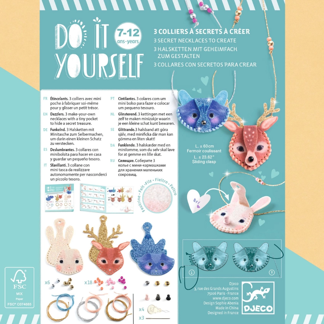 Deze DIY-set bevat alles wat je nodig hebt om drie lieve dierenkettingen te maken. Dankzij de duidelijke geïllustreerde handleiding plakken en stikken kinderen stap voor stap de zachte vilten hangers, versieren ze met kralen en rijgen ze aan een koordje. Het resultaat zijn originele accessoires die perfect zijn als cadeau voor vriendjes of als unieke versiering voor elke dag.