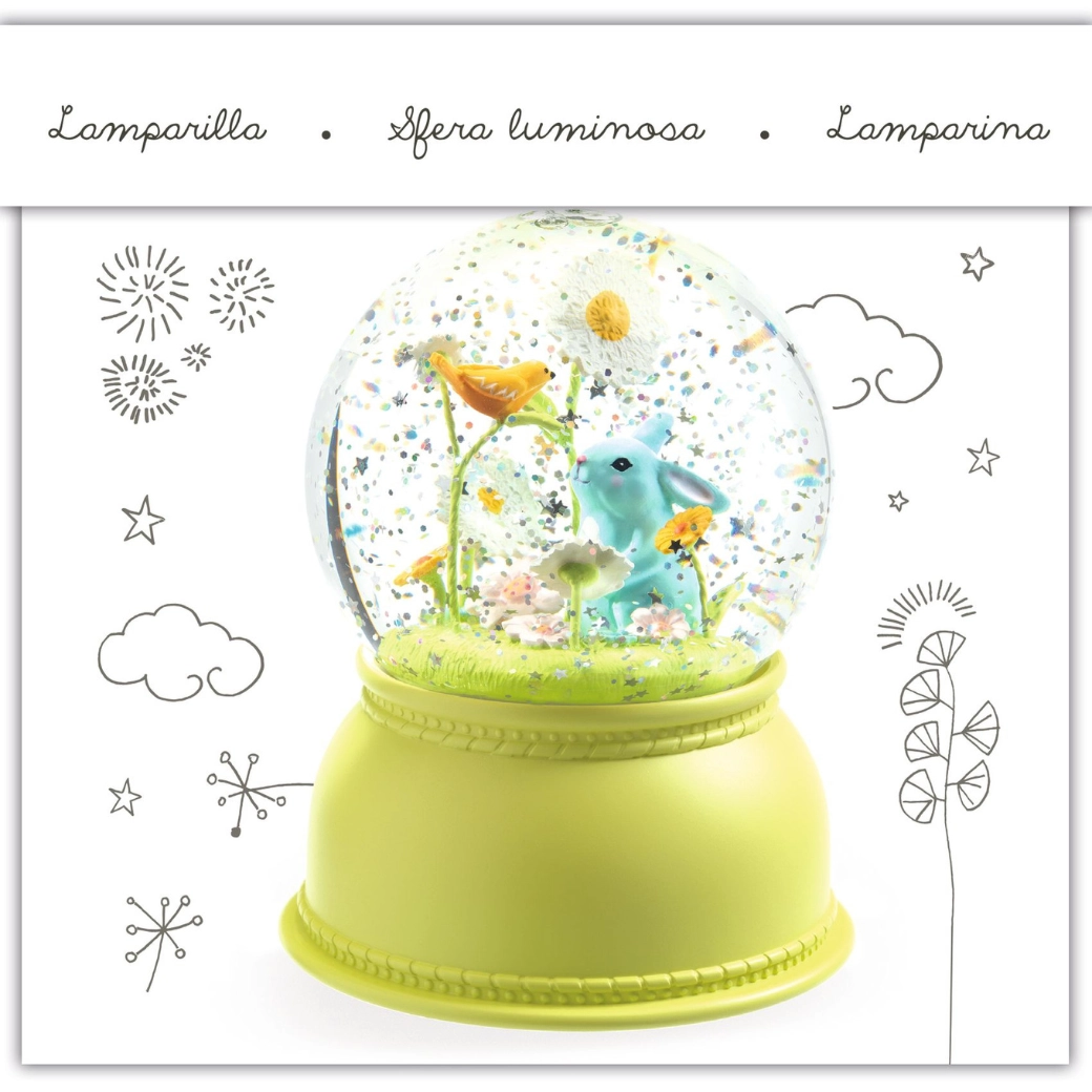 Een sprankelende sneeuwbol-lamp met een schattig konijntje van DJECO verandert de kinderkamer in een magische en rustgevende ruimte. Het glinstert subtiel, creëert een aangename sfeer en is ideaal als nachtlampje voor kinderen.