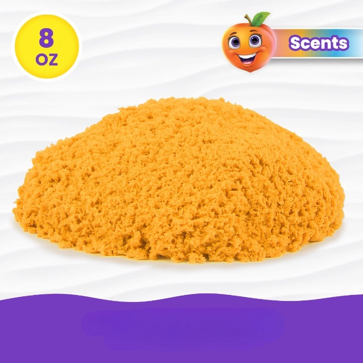 KINETIC SAND Scents biedt zintuiglijk spel met het realistische gevoel van nat zand dat toch niet aan de handen blijft kleven. De aangename perzikgeur prikkelt de verbeelding, terwijl de zachte en kneedbare textuur de ontwikkeling van de fijne motoriek en concentratie ondersteunt.