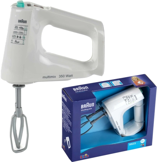 Realistische kinderhandmixer met BRAUN-licentie van het merk KLEIN die alle kleine koks zal verrassen. Biedt bewegende garde(s), een realistisch geluidseffect en een veiligheidsfunctie die het draaien stopt bij aanraking. Ideaal om koken na te bootsen in de veilige omgeving van thuis. Zonder originele verpakking.