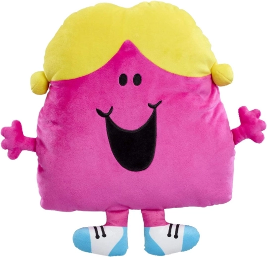 Dit grote pluche kussentje LITTLE MISS CHATTERBOX betovert met vrolijke kleuren – een roze lijfje, gele staartjes en blauw-witte “schoentjes”. Het zachte oppervlak nodigt uit om te knuffelen en biedt kinderen comfort tijdens het lezen, uitrusten en bij het inslapen.
