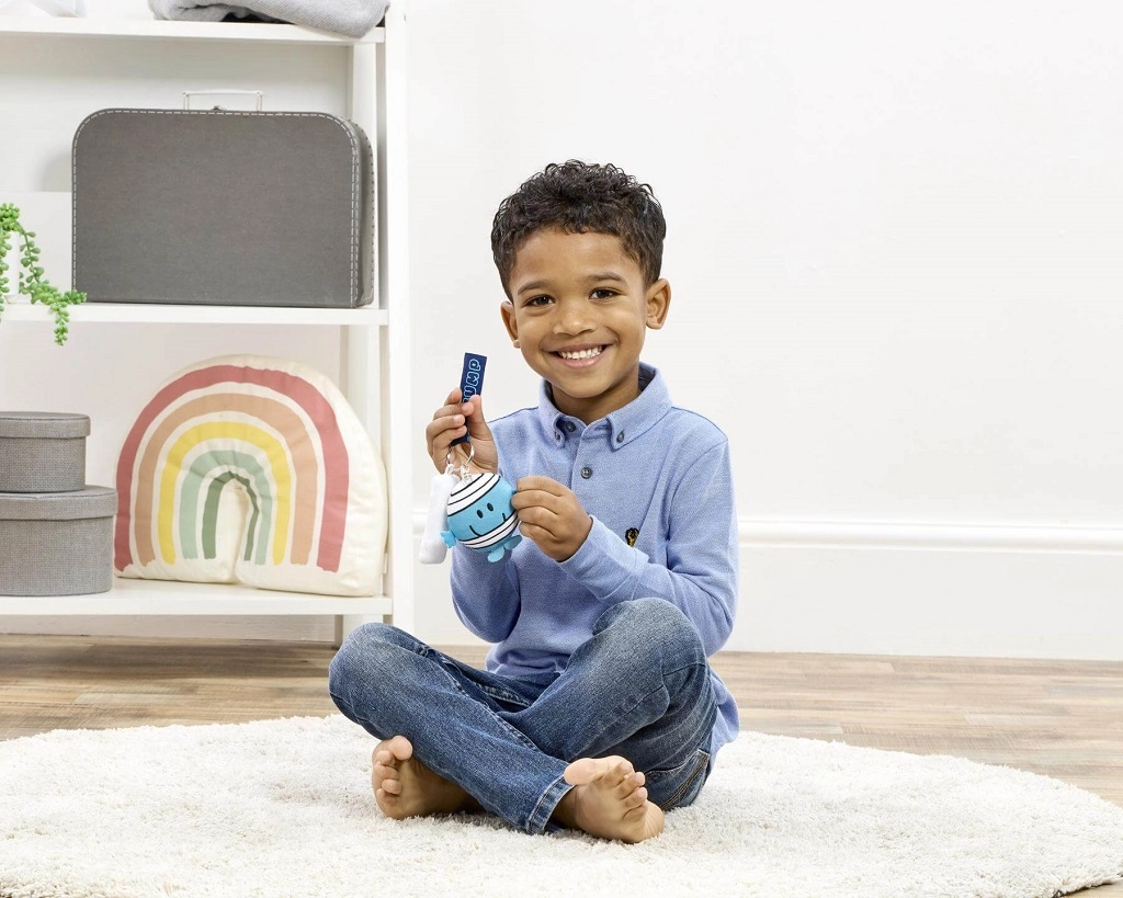 De vrolijke sleutelhanger met MR. BUMP brengt een vleugje nostalgie en elke dag een glimlach. Het blauwe lijf met witte gestreepte “verbandjes”, het geborduurde gezicht en de zachte pluche maken er een fijn geluksbrenger van voor klein en groot. Dankzij de metalen ring en karabijnhaak bevestig je hem gemakkelijk aan de rits van een rugzak, het handvat van een handtas of een sleutelbos.
