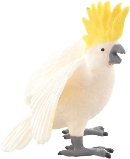 Fijne textuur van de veren, een gele kuif en een authentieke houding brengen de echte uitstraling van een kaketoe naar de kinderkamer of vitrinekast.