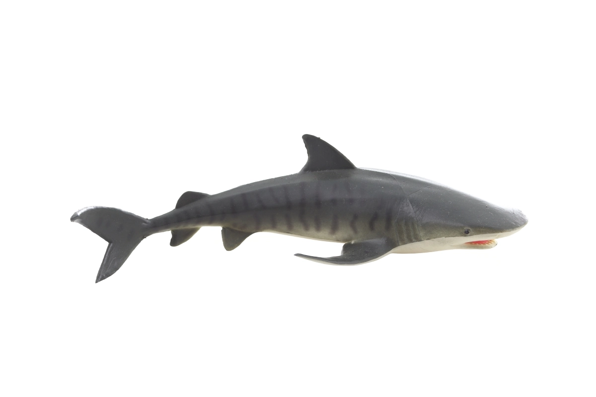 Dit realistische tijgerhaaifiguur brengt een stukje onderwaterwereld naar de kinderkamer. Het is gemaakt van duurzaam plastic, heeft levensechte details van vinnen, kieuwen en subtiele strepen en is perfect voor fantasierijk spel en educatieve activiteiten over mariene biologie.
