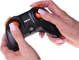 Voor een directe start druk je gewoon op de start/land-knop. De drone kan 3D-acrobatiek (360° salto) en diverse manoeuvres zoals cirkelvlucht, vooruit/achteruit, rotatie en zigzag. In de doos vind je alles wat je nodig hebt: drone met ingebouwde accu, 2,4GHz-controller, USB-oplader en 4 reservepropellers.