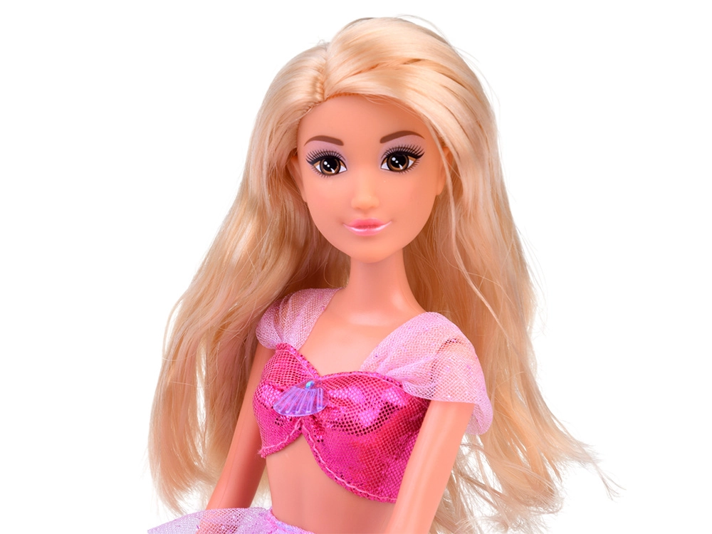 De Anlily-pop betovert met een zachte glimlach, grote bruine ogen en lange blonde haren die perfect zijn om te kammen en kapsels te maken. In de verpakking vind je alles voor twee stijlen: avondjurk van een prinses en een zeemeerminoutfit met een glinsterende crop top en een stoffen staart met doorzichtige vinnen.