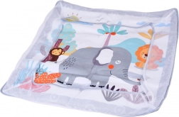 Door de combinatie van verschillende texturen, contrasterende kleuren en speelgeluiden prikkelt de mat zicht, gehoor en tast, en ondersteunt tegelijk de oog-handcoördinatie en de natuurlijke motorische ontwikkeling. Het zachte materiaal isoleert prettig tegen een koude vloer en is eenvoudig te onderhouden. De mat is ideaal voor tummy time, de eerste omrolpogingen, zitten en kruipen.