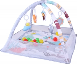 Deze educatieve speelmat met zachte vulling en vrolijke diertjes creëert een veilige hoek om de wereld vanaf de eerste dagen te ontdekken. Twee gekruiste, gemakkelijk afneembare bogen dragen hangende speeltjes die uitnodigen tot kijken, grijpen en bewegen. Mesh zijwanden helpen speeltjes en ballen binnen te houden en vergroten het gevoel van veiligheid.