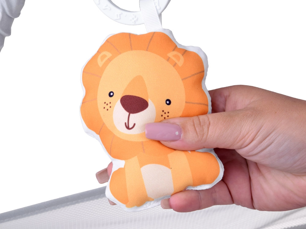 - hangspeeltjes inclusief spiegeltje, zonnetje met wolkje en diertjes (leeuw, olifant, aapje)