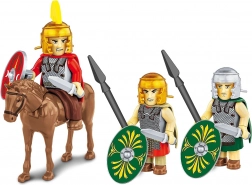 - 3 figuren: 2 infanteristen (cohortes) met nieuwe ovale schilden en 1 ruiter met zwaard en rond parma-schild.