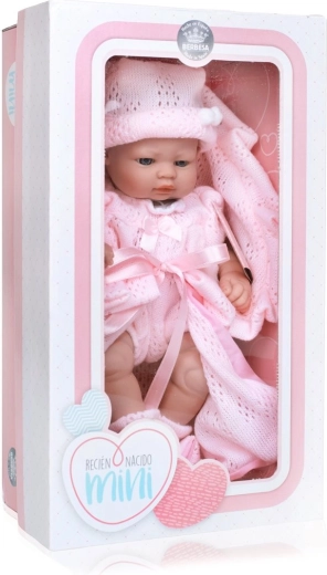 De schattige Spaanse babypop VALENTINA van 28 cm verrast met een realistische uitstraling en hoogwaardige afwerking. Ze heeft een volledig vinyl lichaam met een subtiele vanillegeur, beweeglijke ledematen en fijn uitgewerkte details zoals bij een echte pasgeboren baby. Inclusief gebreide roze onesie, mutsje, sokjes en gebreide wikkeldeken – alles is afneembaar. Ideaal cadeau voor kinderen vanaf 3 jaar en perfect voor spel en het stimuleren van de fantasie. Realistische uitvoering, beweeglijke ledematen, subtiele vanillegeur, hoogwaardige Spaanse productie.