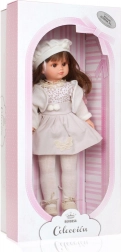 De pop is gekleed in een elegante set kleding – een gebreide trui, T‑shirt, rokje, baret, panty en schoentjes. De kleding is afneembaar, zodat kinderen de pop gemakkelijk kunnen omkleden en hun fantasie en fijne motoriek kunnen ontwikkelen. Een uitstekende keuze voor kleine verzorgers en als stijlvol cadeau.