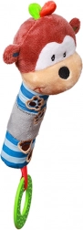 Dit pluche piepspeeltje met bijtring van BABY ONO in de vorm van een vrolijk aapje is ontworpen voor kleine handjes. Bij schudden of indrukken geeft het een zacht piepgeluid dat kinderen motiveert om te ontdekken. De getextureerde bijtring verlicht gevoelig tandvlees tijdens het doorkomen van tandjes.