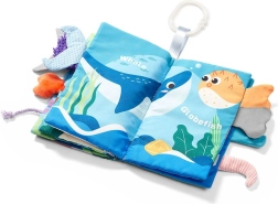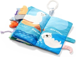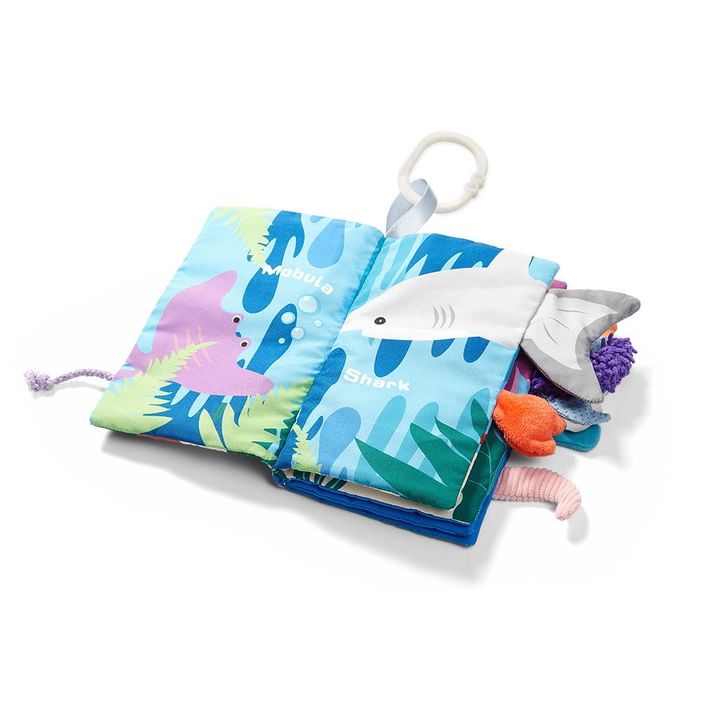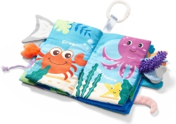 Dit zachte stoffen boekje met oceaanthema prikkelt alle zintuigen van je kind – van grijptraining en het ontdekken van verschillende oppervlakken tot luisteren naar het knisperen van de pagina’s. Heldere kleuren en schattige dieren trekken de aandacht en stimuleren concentratie en verbeelding.