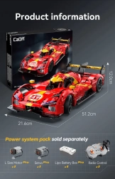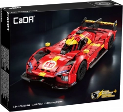 Bouw een indrukwekkende CaDA Blazing Flame racewagen op schaal 1:10 met een lengte van 51 cm uit 1518 stukjes. Het model blinkt uit met een gedetailleerd interieur, te openen deuren en motorkap, werkende besturing, onafhankelijke vering en een V6-motorreplica. Optioneel uit te rusten met RC-aandrijving (compatibel met Power System Pro – niet inbegrepen).