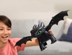 De figuur biedt 5 unieke persoonlijkheden en meer dan 60 geluids- en lichtreacties. Ontgrendel minigames zoals “keep away” (het visje weghouden), “follow me” (volg mij) en “chicken”. Op het hoogtepunt van jullie vriendschap laat hij een plasma-aanval zien – de ogen lichten blauw op en de vleugelspanwijdte tot 51 cm vult de ruimte. Til de draak op en je hoort realistische vlieggeluiden – ideaal voor creatief spel en het herbeleven van filmscènes.