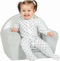 De stijlvolle en praktische kinderfauteuil NEW BABY van superzachte minky in elegant grijs is ideaal voor peuters. Het pluche oppervlak met subtiele 3D-stipjes voelt fijn aan, terwijl de stabiele schuimconstructie comfort biedt tijdens spelen, boekjes kijken en relaxen. Het schattige vossenmotief geeft de kamer een speelse touch.