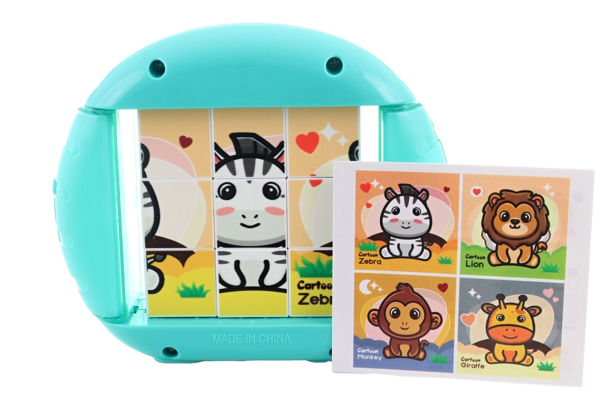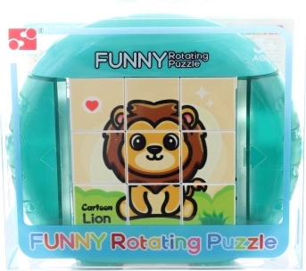 Deze kleurrijke draaiende puzzel verbindt spel en leren. Door de stukjes te draaien en te schuiven leggen kinderen schattige dierenafbeeldingen, zoals een leeuw of zebra. Duurzaam kunststof en een overzichtelijk ontwerp zorgen voor comfortabel en veilig gebruik, ook voor kleine handjes.