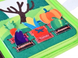 - Interactief leren door spel: groenten sorteren in mandjes, dieren toewijzen, luikjes openen, veterstrikken.