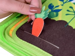 Luikjes optillen, wortels uit het “bedje” trekken, schijfjes met klittenband plaatsen en veterstrikken in de schuur – alles is gericht op vingertraining en coördinatie.