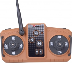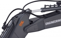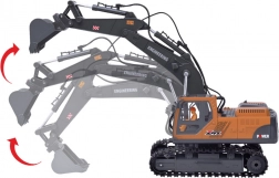 De controller met twee joysticks biedt precieze bediening van de rupsbanden, het draaien van de cabine en de bewegingen van de arm. De DEMO-functie laat alles zien met één druk op de knop.