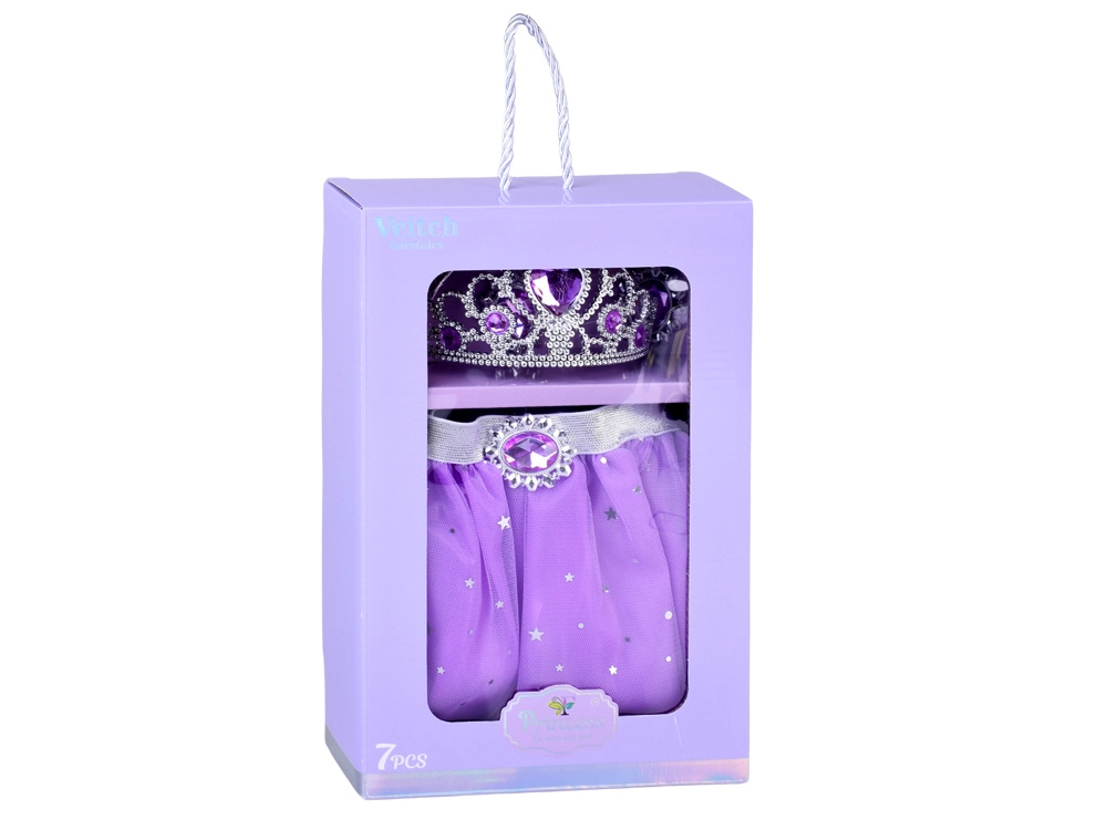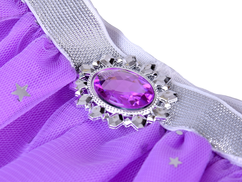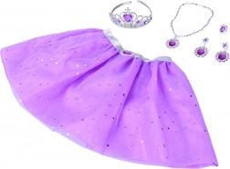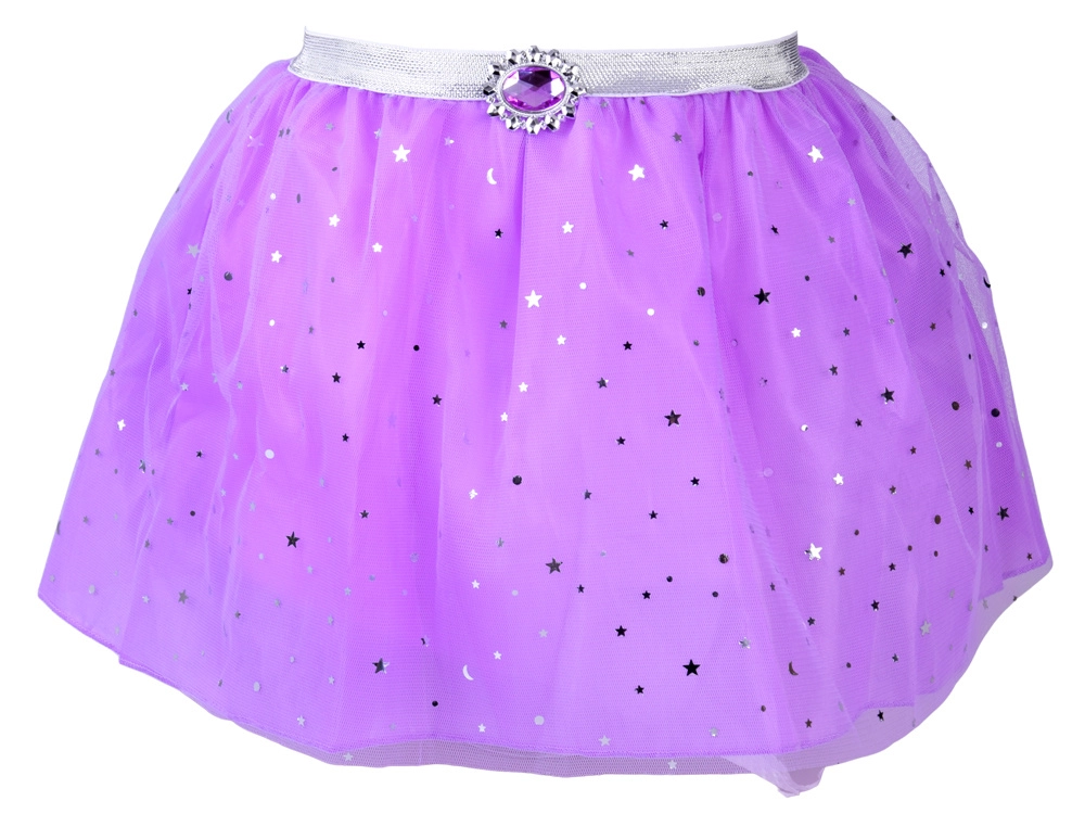 Verander elke verkleedsessie in een sprookjesbal. De paarse tutu-rok met glinsterende sterren en maantjes betovert op het eerste gezicht, terwijl de zilveren kroon, ketting, ring en hangende oorbellen met paarse steentjes de koninklijke look compleet maken. De elastische taille zorgt voor comfort en gemakkelijk aan- en uittrekken.