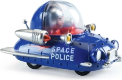 Het Djeco Crazy Motors Space Police autootje brengt intergalactisch avontuur naar de kinderkamer. Het blauwe politievoertuig met de tekst SPACE POLICE heeft een transparante koepel met een kleine piloot, zilverkleurige raketdetails en wielen voor soepel rijden. Perfect voor zelfstandig spel of als uitbreiding van de Crazy Motors-collectie.
