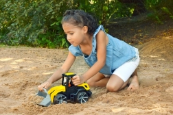 De gemakkelijk te bedienen bak stimuleert de motoriek en realistisch bouwspel – scheppen, verplaatsen en lossen van materiaal.